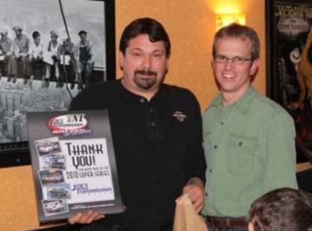 But the story of the night was the prize table. With a few thousand dollars worth of prizes on it, everyone got to go home with something great - thanks entirely to sponsor support. Event sponsors are vital to the success of each event. "Without them, the guaranteed payouts would be impossible." The 2010 event sponsors were Kevin Orr Mechanical, The Second City Toronto, JanCen Motorsports, Gillogly Resale, Steve's Electric, Bieda's Powersports, 24 Hour Tire Service, Rosehill Auction House and Scott Jahren Paint. Associate sponsors include Performance Improvements, J&S Collision, Hoosier Tire Canada, The Balancing Act, along with Dunn Tire Raceway Park , Empire Dragway and Cayuga Dragway. "Tonight is the perfect example of why we run this series," said Ted. "These guys are ruthless competitors on the racetrack but off the track, they have nothing but respect for each other. They're just great people!"