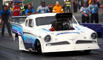 Judd was looking to win back-to-back Top Doorslammer events after winning the Australian Nationals at Sydney Dragway in September and, for the second year in a row, the Nationals-Goldenstates double. Judd started his Goldenstates title defense, posting the quickest and fastest pass for the event in the first qualifying session, 5.845 seconds at 245.23mph (394.57km/h), early on the Friday (December 3) evening. The time was his fifth quickest-ever pass. With the second and third qualifying sessions run in cooler than expected conditions, Judd's William Buck '59 Studebaker had trouble hooking up to the track. Judd failed to get in a clean pass in either of the two remaining sessions. In the second session, he crossed the centerline after losing traction, narrowly missing Murray O'Connor, who also had handling problems in the other lane. "The Kwinana Motorplex track is normally a good racing surface. However, it was recently scraped and ground so is still a bit green. I expect it (the track) will get better as the season progresses," Judd said. "We were right on the edge running the 5.84sec (in the first session). It just happened to be the right setup for the conditions at that time with the car on the brink of tire shake. The data and TV footage confirm I feathered the throttle twice in low gear. In the next two sessions we simply overpowered the track." The final qualifying order saw Judd (5.845/245.23) top the eight-car field, followed by arch-rivals, John Zappia (5.924/243.24) and Maurice Fabietti (5.969/238.72), then Mark Belleri (5.994/234.98).