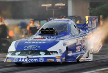 Del Worsham (Top Fuel) , Shane Gray (Pro Stock) and Jerry Savoie (Pro Stock Motorcycle) also took the provisional top spots in their respective categories at the eighth of 22 events in the NHRA Full Throttle Drag Racing Series. Hight, who is coming off his third win of the season two weeks ago in Topeka, drove his Auto Club Ford Mustang to a 4.090-second pass at 310.34 mph to become the provisional top qualifier in Funny Car. If it stands it would be his first No. 1 qualifier of the season, 39th of his career and second consecutive at Raceway Park. “Jimmy Prock (crew chief) told me that we weren’t going to get crazy, but we were going to just try to get down the track because that’s what we’ve been lacking,” said Hight. “We haven’t been consistent until Sunday at Topeka. We’ve had some good luck here in qualifying but I’ve never won here, and this is one of them that you want to win. It’s as big as Gainesville and Indy because there’s so much history here.”