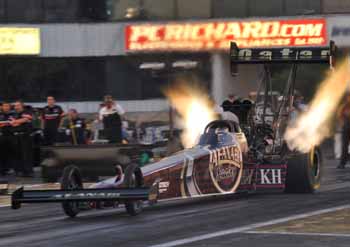 In Top Fuel, Worsham drove his Al-Anabi Racing dragster to a 3.785 at 322.34 in the final qualifying session of the day to take the provisional No. 1 spot. If it stands, it would be Worsham’s second of the season and seventh of his career. “When conditions like that come along, I’m glad that Alan Johnson is the tuner of my car because, man, what a job he and the team did,” said Worsham. “We smoked the tires the first run, and we smoked the tires the last run in Topeka, on E2, and you think they might be conservative, but a guy like Alan just went right out there for the throat. I the words of Alan, we went from the (outhouse) to the henhouse in one run.”