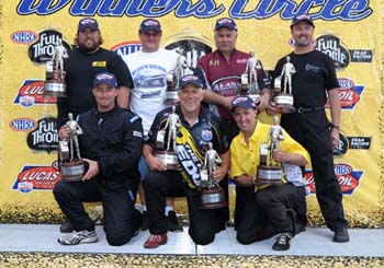 On the high side, acclaimed driver Rampy pulled off the fourth double-up of his career with wins in both Comp Eliminator and Super Stock. The now 77-time national event winner's most recent previous double-up was at Phoenix in 2006 when he took home trophies in both Comp and Stock. Prior to that, Rampy celebrated doubly in the winner's circle after a Comp and Stock win at the fall Las Vegas race in 2005 and also in 1998 at Sonoma, where he won Comp and Super Comp. The prolific Piedmont, Ala., driver has several almost-doubles, too, most recently in 2007 at the spring race at The Strip at Las Vegas Motor Speedway where he was runner-up in Comp and Stock.