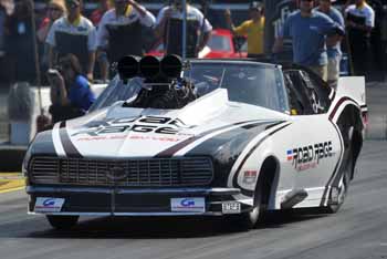Personett, who claimed his first No. 1 qualifying position of the season and second of his career, powered his turbocharged ProCare Rx ’68 Camaro to a run of 6.068 seconds at 248.43 mph to defeat Steve Matusek’s late model Ford Mustang, which trailed with a 6.164 at 243.50. “The (rain) delay made the race track really, really good,” said Personett, whose top qualifying performance was 5.961 at 252.80. “I underestimated the race track, and I didn't tune the car up like I needed to.” Three of Personett’s R2B2 Racing teammates – Roger Burgess, Melanie Troxel and Leah Pruett-LeDuc – also scored opening round wins. However team owner Burgess won’t get to continue in eliminations. After driving his ProCare Rx ’68 Firebird to the first-round win over Kenny Lang, his car went out of control and crashed at the top end of the track. Burgess was extracted from the damaged car and was checked and released by NHRA emergency services officials. "I can't believe I'm getting this much attention for a Round 1 win, but it was on a holeshot so I guess I understand," Burgess joked. "Seriously, I'm OK. I have a severely bruised (left) heel that I'm icing at the moment. We don't think anything's broken in there but we're going to monitor the situation tonight. The Safety Safari was there immediately and we signaled back and forth to each other that I was OK. They eventually had to cut me out of there and the car is totaled. I will say that all the safety equipment worked exactly like it should and John (Medlen, VP of Research and Development at R2B2 Racing) was pleased with how well the cockpit looked. I'm very lucky.” Series points leader Khalid Balooshi posted the quickest run of the weekend in his nitrous-injected Speedtech ’68 Camaro. His performance of 5.960 seconds at 239.31 mph earned him a first round win over veteran driver Jay Payne. Other first round winners included Danny Rowe, Troy Coughlin and Mike Janis. Second round matchups include: Personett vs. Rowe; Coughlin vs. Balooshi; Troxel vs. Janis; and Pruett-LeDuc vs. Burgess. Eliminations will continue Sunday at approximately 3:30 p.m.