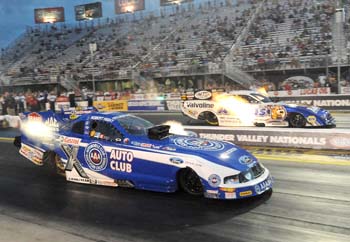 Larry Dixon (Top Fuel) and Mike Edwards (Pro Stock) also were winners at Bristol Dragway in the NHRA Full Throttle Drag Racing Series. Hight gained momentum with a consistent string of powerful runs throughout the rain-delayed day of racing and finished off final-round opponent Jack Beckman with another strong run in his Auto Club Ford Mustang. Hight powered to a 4.092-second run at 314.90 mph while Beckman trailed with a 5.615 at 152.66 in his Aaron’s/Valvoline Dodge Charger. Hight’s final-round speed certified his earlier performance of 316.45 as the national record. Hight defeated Ron Capps, teammate and series leader Mike Neff and Jeff Arend en route to the final round. “We finally got Bristol, how about that?” said Hight of his 22nd victory. “I’ve had trouble with all the races that start with 'B' like Bristol or Brainerd, but we got this one. There’s nothing better than to win this race since it’s now Ford-sponsored. We made eight great runs, and when we needed it the most, Jimmy [Prock, crew chief] pulled it off. I’ve never set any kind of a record before, so that’s pretty cool, too. I know there are no points for a speed record, but it’s still cool to have.”