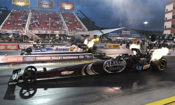 The NHRA Full Throttle Drag Racing Series continues June 23-26 with the fifth annual Summit Racing Equipment NHRA Nationals at Summit Racing Equipment Motorsports Park in Norwalk, Ohio. Sunday's final results from the 11th annual Ford NHRA Thunder Valley Nationals presented by Tri-Cities Area Ford Dealers at Bristol Dragway. The race is the ninth of 22 in the NHRA Full Throttle Drag Racing Series- Top Fuel -- Larry Dixon, 3.836 seconds, 318.09 mph def. Antron Brown, 3.851 seconds, 306.19 mph. Funny Car -- Robert Hight, Ford Mustang, 4.092, 314.90 def. Jack Beckman, Dodge Charger, 5.615, 152.66. Pro Stock -- Mike Edwards, Pontiac GXP, 6.685, 205.79 def. Erica Enders, Chevy Cobalt, 11.863, 72.89. Pro Modified -- Melanie Troxel, Chevy Corvette, 5.928, 250.83 def. Danny Rowe, Chevy Camaro, foul. Super Stock -- Mike Saye, Pontiac Firebird, 10.559, 115.00 def. Dan Fletcher, Chevy Camaro, foul. Stock Eliminator -- Dan Fletcher, Chevy Camaro, 11.648, 101.07 def. Joe Santangelo, Camaro, 11.149, 98.93. Super Comp -- Shane Carr, Dragster, 8.946, 160.08 def. Riley Ledbetter, Dragster, 8.936, 172.96. Super Gas -- Tommy Phillips, Chevy Corvette, 9.968, 134.83 def. Scott Lawton, Chevy Roadster, broke. Top Dragster -- Jenifer White, Dragster, 6.632, 203.61 def. Casey Spradlin, Dragster, foul. Nitro Harley -- Tommy Grimes, Harley, 6.328, 224.32 def. Damian Cownden, Harley, 12.222, 71.11.