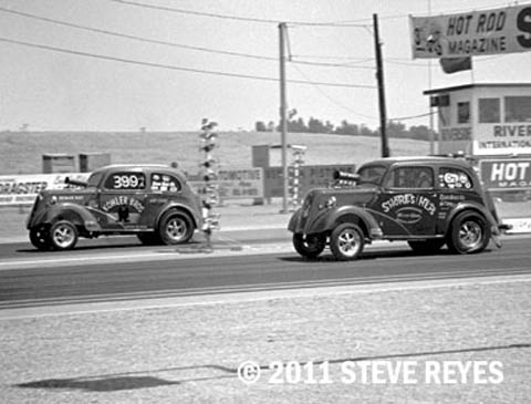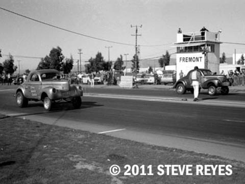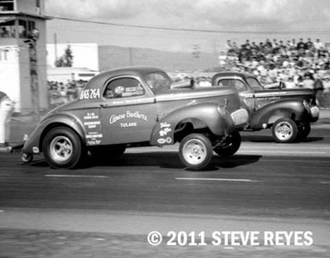 The Airoso Brothers would venture from central California and race their BB/GS Willy's at Fremont. Here in 1966 the Airoso Brothers took on another brother team, the Panellas and their 1941 Willy's pickup BB/GS.