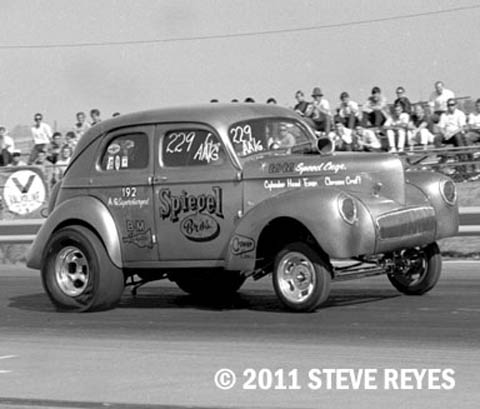The Speigal Brothers made a pass with their four door Willy's AA/GS in Sacramento, California in 1967. This Willy's body style was rare in the AA/GS class and I believe it was rare in any gas class. The Speigal Brothers would go funny car racing with the Burkholder Brothers. This team of brothers was not successful.
