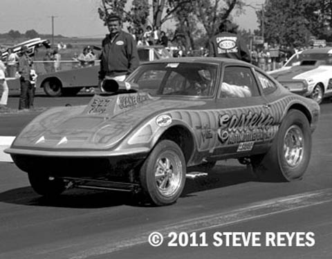 A local gasser hero in the San Francisco Bay area was "hippie" Mike Mitchell. Mitchell's AA/GS '33 Willy's was a favorite of Bay area drag fans. Mitchell would sell his Willy's and build a topless Corvette AA/GS. Mike then sold the Vette and built a Cuda funny car. Mitchell then twice got to feel what a burning race was like and he soon retired after his fires.