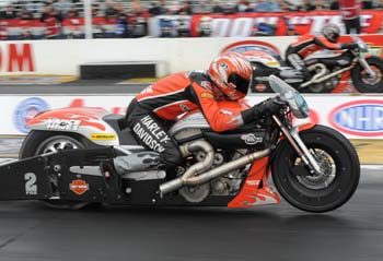 "We just missed the clutch set-up on both of today's qualifying runs and it was worse in the second session," said Edwards. "We changed engines this evening for the second session to see if it might run any better, but that didn't happen. We're struggling in the clutch area right now. We made a real nice run on Thursday, but we've just gone backwards since then." Hines stayed in the No. 1 spot in Pro Stock Motorcycle after four rounds of qualifying. His Thursday night run of 6.820 at 197.54 on his Screamin' Eagle Vance & Hines Harley-Davidson was strong enough to give Hines his second No. 1 qualifier of the season and 30th of his career.