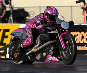 ?We went down through there and made a good lap,? Krawiec said. ?Hector Arana Sr. went out and made a better run (in the first session), so we went back, looked at data, just changed a little bit on the set-up. We were a little overaggressive about 30 or 40 feet out on the first run, so we actually took a little lock up weight out of it to make the bike transition smoother through the early part of the run. It worked out for us.? Arana Sr. was second with a 6.834 at 194.46 on his Lucas Oil Buell, while Andrew Hines was third on his Screamin? Eagle Harley-Davidson with a 6.853 at 195.93.