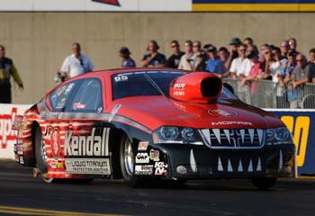 In Pro Stock, veteran driver V. Gaines is the leader after pushing his Kendall Oil Dodge Avenger to the top spot with a run of 6.544 at 209.62. If the time holds it would be his first career No. 1 qualifying position. ?We actually might have gone a little quicker, but I misjudged the finish line and shut off 6.4-seconds into the run,? Gaines said. ?But that really hurt the speed more than the elapsed time.? Points leader Allen Johnson was second with a 6.545 at 211.49 in his Team Mopar Dodge Avenger and title challenger and defending world champ Jason Line was third in his Summit Racing Chevy Camaro with a 6.553 at 211.86. St. Louis winner Erica Enders was fourth in her GK Motorsports Chevy Cobalt with a 6.560 at 211.00.
