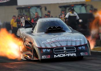 Morgan Lucas (Top Fuel), V. Gaines (Pro Stock) and Eddie Krawiec (Pro Stock Motorcycle) also were qualifying leaders at the fourth of six races in the NHRA Full Throttle Countdown to the Championship playoffs. After winning at St. Louis last weekend, Beckman continued to gain momentum as he became the third Funny Car driver in history to dip into the three-second zone by posting a career-best effort of 3.989 seconds at 320.58 mph in his Schumacher Electric Dodge Charger. If he can post a time during the rest of the weekend at 4.029 seconds or quicker, Beckman will certify the time as an NHRA national record and receive a 20-point bonus. When Beckman was getting ready to stage for his second qualifying attempt of the day, NHRA Safety Safari officials shut he and Jeff Arend?s cars off due to oil on the racing surface. They had to go back to the pits and refuel their cars and ended up running at the end of the Funny Car session. The brief delay ended up working out for Beckman.