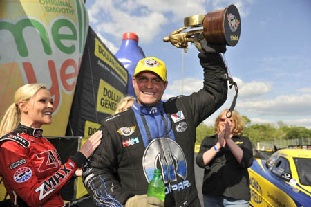 MATT HAGAN: Well, like I said, I think the best plan is to continue to do what we've done. I don't think we need to change anything. We've led in points all year long. There is a reason our car has been number one for the majority of the year and it's because it's been consistent. There is a lot of luck involved with a lot of this racing stuff but you really make a lot of your own luck. We've had a car that's gone up and down the track 20 times without smoking the tires and doing anything crazy, and that's hard to do when you pour nitro in the tank. And that really boils down to the guy turning the knobs and making the decisions and obviously driving it well. But I think what we need to do is just stay focused and stay driven to keep doing what we've done all year long, and that is to try to turn four win lights on subbed. You capitalize on the little things and make sure you're taking advantage of the small opportunities. When we won the championship, there were so many times that someone messed up in front of us and we could have taken advantage and really run away with the thing, and we just never capitalized on some of those small misfortunes for some others. And I think that if you can do that you're going to be a really hard car to stop. But the hard part is doing that. What we've been able to do all year long is go down the race track and run. Dickie runs a smart race car. He's not out here trying to do anything crazy or reinvent the wheel. He's just been rubbing on this combination, and he just wants to keep moving forward. The same with me. I just want to keep driving the same way I am, line them up, and run what you've run kind of thing. Like I said, just on cloud nine. We've had a dream season. If we don't win another one, which I hope we do, it's been a wonderful season so far. Q. Coming into Indy with the bigness and greatness of the Indy race, is that good preparation for just slide into the Countdown and playoffs which are big too? MATT HAGAN: Yeah, you know, I think that Indy is a race everybody wants to win. We were disappointed that we didn't. But you learn from it, move forward and put it behind you. I think that our team, like I said, we got into some situations there at Indy where we were pushing ourselves a little hard to be aggressive out there when we probably shouldn't have. Especially in the first rounds when you're just supposed to go down the racetrack, and we didn't do that. The big thing was that we learned from it, and it was a race that we had an opportunity, but it didn't count so much as it would in a Countdown. I think as long as we continue to grow as a team. You have to remember, this team is still very, very young as far as being together. We've only been together this year and we've had so much success and the guys are gelling so well, but we've still got a lot to learn and a lot of growth left. You know, it's coming though. Like I said, I can see the writing on the wall. It's there. It's just a matter of capitalizing on it and a matter of taking advantage of some small opportunities that arise. Q. Quick question, you've come to experience this Countdown from all angles. In 2010 you had the title and lost it in a heartbreaking fashion. 2011 you win it all. Last year you didn't make the Countdown, so you've seen it from all angles. What do you gather from all those experiences as you go into the Countdown this year ranked number one? MATT HAGAN: Yeah, for Magneti/Marelli and Rocky and everything, obviously, we've had a car