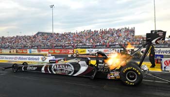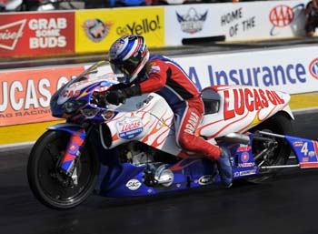 V. Gaines was second in his Kendall Oil Avenger with a 6.526 at 211.96 and Jeg Coughlin, who earned enough bonus points to move into a tie atop the series standings with Jason Line, will start third in his JEGS.com/Mopar Avenger. Co-leader Line and regular season top seed Mike Edwards, currently third in points, will meet in a another blockbuster Countdown first-round showdown. Rodger Brogdon was the only Countdown qualifier who failed to make the 16-car field for eliminations. Arana Sr. raced to his third No. 1 qualifying position of the season and 24th of his career in Pro Stock Motorcycle, speeding to a track record performance of 6.796 at 198.58 on his Lucas Oil Products Buell. The 2009 world champ will face Mike Berry in the opening round. "This is just what our team needed," said Arana Sr., who moved to third in points with the qualifying effort, 20 behind points leader and son Hector Arana Jr. "We still haven't found the sweet spot, but we're getting better." Michael Ray qualified second with a 6.830 at 196.99 on his Sovereign-Star Racing Buell and the series second-place rider Matt Smith, who cut Arana Jr.'s lead to five points during qualifying, will start third on his Viper Motorcycle Company Buell with a 6.850 at 196.30. Arana Jr. qualified seventh on his Lucas Oil Buell and will race Jerry Savoie in the first round.