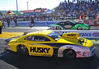 "This was important because I've messed up so much here lately in final rounds," Smith said. "I've had the best bike and gave it up. It has been one thing after another. I could have won five or six races this year. This time, I tried not to mess up. When we got to the final, I knew we had a better bike, and I took the win and the points lead. Now we just need to see what happens the rest of the year." Smith now holds a 75-point lead over both Lucas Oil Buell riders Hector Arana Sr. and Hector Arana Jr., who are tied for second place. Smith says he is lucky to be in this position, considering he nearly didn't get to race today after falling ill last night. "I got sick last night with food poisoning, and I had an IV in me," Smith said. "I have to say thanks to the doctors here or I wouldn't be here today. I was hurting pretty bad. My blood pressure was really low, and they told me that if it didn't improve, I wasn't going to race today. I drank water all night, and at 9 a.m., they checked me again, and I felt a lot better. I was lucky I even got to race, and now I made it to the winner's circle." The NHRA Mello Yello Countdown to the Championship continues Oct. 3-6 with the Auto-Plus NHRA Nationals at Maple Grove Raceway, Reading, Pa. Sunday's final results from the Second annual AAA Insurance NHRA Midwest Nationals at Gateway Motorsports Park. The race is the 21st of 24 in the NHRA Mello Yello Drag Racing Series- Top Fuel -- Antron Brown, 3.788 seconds, 323.97 mph def. Khalid alBalooshi, 3.833 seconds, 319.98 mph. Funny Car -- John Force, Ford Mustang, 4.097, 310.13 def. Jack Beckman, Dodge Charger, 4.127, 309.84. Pro Stock -- Erica Enders-Stevens, Chevy Camaro, 6.540, 211.23 def. Mike Edwards, Camaro, 6.532, 212.36. Pro Stock Motorcycle -- Matt Smith, Buell, 6.887, 194.52 def. LE Tonglet, Suzuki, 6.950, 192.14. Pro Modified -- Mike Castellana, Chevy Camaro, 6.084, 194.72 def. Rickie Smith, Camaro, 7.060, 144.81. Super Stock -- Bill Rowe, Chevy Nova, 9.820, 133.05 def. Bo Butner, Ford Mustang, foul. Stock Eliminator -- Kevin Stubbs, Chevy Camaro, 10.425, 125.45 def. Britt Cummings, Chevy Corvette, 10.530, 123.32. Super Comp -- William Carrell, Dragster, 8.893, 173.49 def. Chris Sullivan, Dragster, 8.868, 167.53. Super Gas -- Marlin Snyder, Buick Opel GT, 9.862, 160.63 def. Luke Bogacki, Chevy Corvette, foul. Top Dragster -- Lane Dicken, Dragster, 6.891, 183.59 def. Phillip Oakley, Dragster, 6.583, 196.07. Top Sportsman -- Robert Irby, Chevy Corvette, 7.106, 188.23 def. Rick Bowman, Chevy Camaro, 7.079, 190.97.