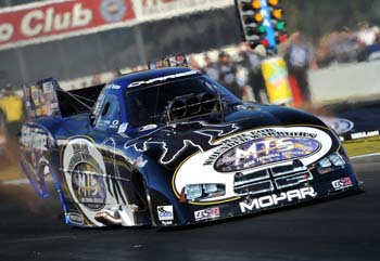 In Funny Car, defending world champ Beckman powered his Valvoline/MTS Dodge Charger to a 4.077 second run at 309.20 mph to lead the 8,000-horsepower category. Beckman is trying to end his season with a victory to extend his streak of consecutive seasons with at least one win to eight. Although he enters this race third in points, he has been shut out of winner's circle this season. "If given the choice to win the race and not finish second, or not win the race and finish second, I would rather win," Beckman said. "I want a Wally. I don't care where we finish in the points. I want the trophy.