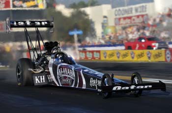 Newly crowned world champ John Force qualified third in his Castrol GTX Ford Mustang as he seeks his fourth consecutive victory to close out the season. Force clinched a record 16th Funny Car world championship two weeks ago in Las Vegas. In Pro Stock, Edwards was quickest, covering the distance in 6.553 at 212.23 in his Interstate Batteries/I Am Second Chevy Camaro. Series points leader Jeg Coughlin is currently third in his JEGS.com/Mopar Dodge Avenger and his closest points challenger Jason Line is second in his Summit Racing Camaro. Edwards, the 2009 world champ, is one of the contenders for the championship, now 78 points back of Coughlin. Line now trails Coughlin by 70 points. All three drivers earned qualifying bonus points today.