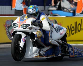 Rookie rider Arana paced Pro Stock Motorcycle qualifying with a performance of 6.888 at 195.28 on his ProtectTheHarvest.com Buell. "We are starting to get some momentum back and I think it showed today in qualifying," said Arana, one of the candidates for the Auto Club Road to the Future Award, which recognizes the season's top rookie. "It was great to start the weekend off like that. We made some adjustments after Vegas. We are going to look at the graph and see where we can improve for tomorrow's session." Qualifying continues Friday with a session at 1:45 p.m. and Saturday with two sessions at 11:45 a.m. and 1:45 p.m. Sunday's eliminations start at 11 a.m.