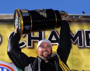 There are several scenarios on the table, but to clinch the championship no matter what his challengers do, Coughlin needs to advance to the semifinals. "Tomorrow will be interesting, to say the least," Edwards said. "I don't think there's a national record out there, so we'll need some help. It's been a tough season the last six races, but if you look at the whole year, it's still been a great season. We have one more day left in 2013, and I hope that we can make the most of it." In Pro Stock Motorcycle, Arana Jr. earned his third No. 1 of the season and 13th of his career with a 6.818 at 195.31 on his Lucas Oil Buell. He will race Jim Underdahl in the first round. With the bike championship already awarded to Matt Smith, Arana is focused on moving up as far as he can in the series standings with a strong run tomorrow.