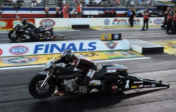 Krawiec, who finished the season in third place in the standings, outran Steve Johnson, John Hall and Michael Ray en route to taking his second victory of the season and 22nd of his career. He celebrated the win with several Harley-Davidson execs, including Willie G (Davidson), the icon of Harley-Davidson Motorcycles. "I look up to him for what he's done in the sport," Krawiec said. "He has a long history of success in motorcycle racing. I ended up giving him the race-win Wally. He has everything he's ever wanted, but he didn't have a Wally. That was just a small token of my appreciation for him." The 2014 NHRA Mello Yello Drag Racing Series opens Feb. 6-9 with the NHRA Winternationals at Auto Club Raceway at Pomona in Southern California. Sunday's final results from the 49th annual Automobile Club of Southern California NHRA Finals at Auto Club Raceway at Pomona. The race is the final of 24 in the NHRA Mello Yello Drag Racing Series-