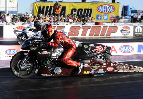 MATT SMITH: Yeah, his two sons are riding, I heard his daughter might ride in the future. My son is not interested in riding motorcycles. He doesn't care anything about drag racing. He's 17 years old. My dad loves to race, my wife loves to race. My brother-in-law Scott Speed runs NASCAR and rally cars. Our whole family loves to race. It's a family-oriented sport. We're just happy to be part of it. Q. You need to get Scott on a bike. MATT SMITH: That would be pretty funny to see that.