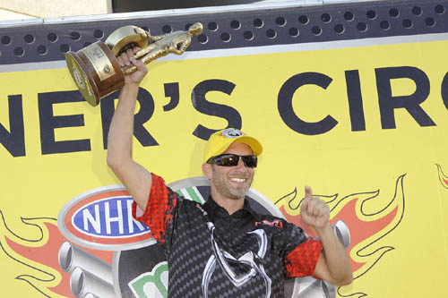 MATT SMITH: We were focused on our team. I have a three-bike team, sometimes have a four-bike team. I have enough going on with our team to know that we have to focus on our deal. We know we have fast bikes. We know other teams have fast bikes. But if we take care of ourselves, we know we'll be in position to qualify good and win rounds. NHRA did a fabulous job this year of getting our class back under control where Harley-Davidson had such a big advantage last year with a motor that nobody could buy or build. I applaud NHRA for getting our class back on a level playing field. You've had all three makes running within two or three hundredths at every race. It's coming down to tuner's and rider's racing again. Q. I know your father won a championship this year. He's had a successful career in cars. Can you catch me up on what led you to race motorcycles and not follow your father down the four-wheel path? MATT SMITH: Our family never had a lot of money. We didn't have the big sponsors to where he could put me in a car. He told me if I wanted to do it, I had to do it on my own. The bikes were cheaper to do than a car. That's all it boils down to. I'm a little guy. That's what I followed. I followed my dream to be able to drag race. So I did it on my own and found little sponsors to be able to run a motorcycle. I think everybody knows the last three years I drove a car, I drove a Pro Mod car off and on for the last three years. I would really love to be able to drive a car a lot, but my heart is in the bikes. We have a four-bike team. That's where I want to be. I want to help somebody else win races and win a championship. Q. How difficult is it to race and run a four-bike team? Sounds like a handful. MATT SMITH: You know, it's really a lot easier than what people think. I have a good team behind me. I have a good wife, good family behind me. Having four bikes on the team, if I had one bike and I was the only bike, I would probably drive myself crazy and second-guess myself so much by just doing one bike. With doing three other bikes plus mine, it totally takes the focus off my bike. I try to work on the other bikes more than mine. I just get to go out there and ride the bike and have fun. It shows. Our whole team does a great job.