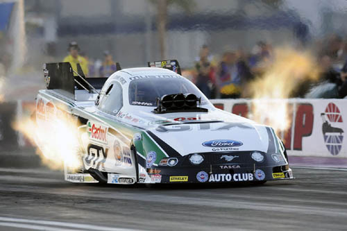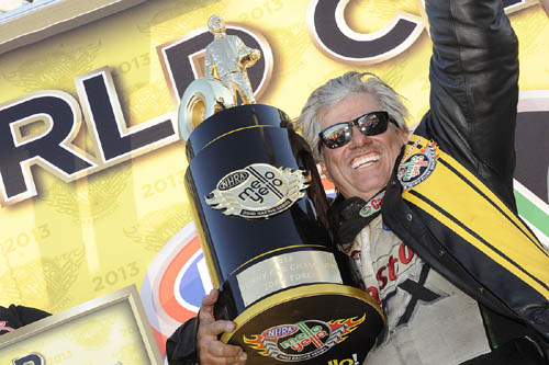 Q. Mid-season you shake up the entire team by crew chief changes. Did you envision yourself winning the championship after that? Is that the turning point of the whole season? JOHN FORCE: It became a turning point. I'd been in three final rounds with Mike Neff. Courtney beat me at the New England inaugural race in the final. I couldn't seem to get around her. That's why I was on my toes wanting to close this thing out. I didn't want to have to go to Pomona. I like the excitement, you know what I mean, the hype, but I wanted to close it. I couldn't take any chances. I'm trying to sell corporate America. You all know that. I've hired Just Marketing. I have my TV show back. Coming back next year with Octagon. I hired Rogers & Cowan, a publicist group. I needed to deliver and show that I could win. It was my wife that made the statement; 'You're upset over the loss of Ford and Castrol.' I want to make it clear, they have been great to me. I'm with them next year. But I've got to find new partners for 2015. I needed to have that championship as part of it. I got my mind right. But we had flip-flopped for only one reason: that I might have to go to Top Fuel. I thought that's maybe what Castrol was talking about. They talked about dropping a team. I thought, If I got to go, I have to go with Jimmy Prock. Jimmy Prock has run Top Fuel. My daughter Brittany struggled all year. Starting to run now, brand-new chassis. We tested it at Vegas. But when we got the new chassis with Jimmy Prock, that's when it started running. We believe the car was a big part of the change. Jimmy found it. It was like magic took place. We could do no wrong. And the confidence was unbelievable that we had. The support from Hight, Mike Neff, the whole brain trust was in that fight to win the championship. The only one trying to beat me was Courtney and her crew chief, because she's trying to move up in the points. We wanted to finish out one, two, three, with me, Robert and Courtney. We got a shot at that at Pomona.