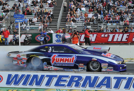 Line, along with Anderson's substitute, Jimmy Alund, went out to show the power of the KB Racing team and their Summit Racing Chevy Camaros. The Minnesota native was fast early and qualified fourth, while Alund had a successful qualifying try at 10th. On race day, Line did what he did best. Knocking out Matt Hartford, Dave Connolly, Shane Gray and V Gaines, Line sent a message that the KB Racing cars were going to be the ones to beat. With the absence of his teammate, Line pointed out that this Winternationals win had more significance than his other two. "This one is probably the biggest one for me," Line said. "If I had a top five list of the coolest races I've won, this one would definitely be on it. No question."