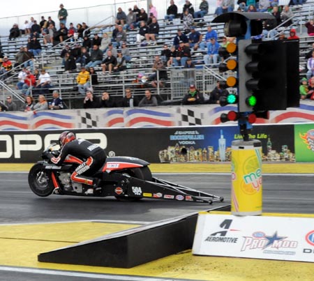 Michael Ray qualified third with a 6.883 at 195.79 on his Arrow M Ranch Suzuki. He will take on Jim Underdahl. Krawiec is the No. 4 qualifier with a 6.893 at 192.88, good enough for a first round matchup with Hector Arana Jr. Recent St. Louis winner Jerry Savoie was fifth following a 6.930 at 194.41 on the Savoie's Alligator Farm Suzuki. He races Shawn Gann in round one. Eliminations for the NHRA Toyota Nationals begin at 11 a.m. on Sunday. The race is televised by ESPN2.