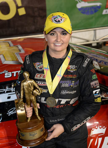 Spencer Massey (Top Fuel), Del Worsham (Funny Car) and Andrew Hines (Pro Stock Motorcycle) also were winners at the penultimate playoff event in the NHRA Mello Yello Drag Racing Series Countdown to the Championship. Enders-Stevens powered her Royal Purple Chevy Camaro to a 6.587-second pass at 209.36 mph to defeat reigning world champ Jeg Coughlin in the final. It was the fifth win of the season for Enders-Stevens and 11th of her career. She dominated at Las Vegas this season, also winning the SummitRacing.com NHRA Nationals in March. She will now head to the Auto Club NHRA Finals with a 17-point lead over Jason Line. "I wanted to come in with a positive attitude," said Enders-Stevens, who is trying to become the first female Pro Stock world champion in NHRA history. "When I walked in the gate on Thursday afternoon I had a good feeling. I was a nervous wreck in Reading. I've never felt that way in my racing career. I decided I was going to give it to God, keep the faith, do my best and let him do the rest. That quick mental change made everything run so much smoother today."
