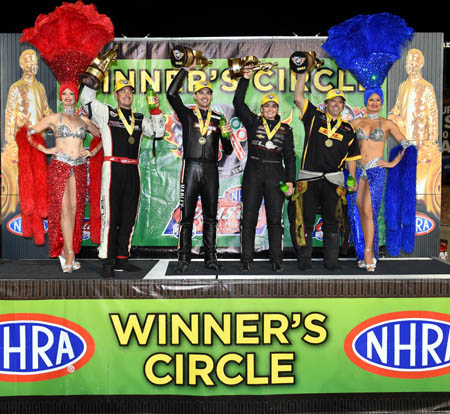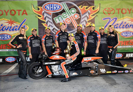 Hagan fell to Worsham in the semifinals and holds a 21-point lead over Force heading to Pomona. In Pro Stock Motorcycle, Hines, who entered Las Vegas with a 25-point advantage over Screamin' Eagle Vance & Hines Harley-Davidson teammate Eddie Krawiec, raced to the win with a 6.965 at 191.02, defeating reigning world champ Matt Smith. Hines, who claimed his class-leading sixth victory of the season and 38th of his career, holds a 92-point advantage over Krawiec in his bid for a fourth world championship. "I don't want to play defense," Hines said of his preparation for the Auto Club NHRA Finals. "I'm going to go on the offense. I don't want to give up any bonus points during qualifying. I want to keep it over 80 points so we can roll into Sunday with the championship basically mathematically locked up."