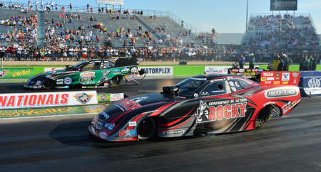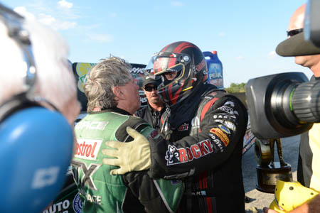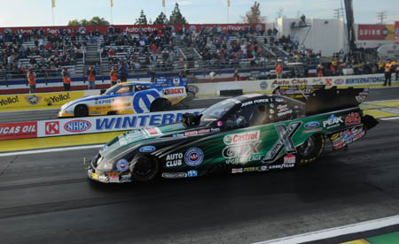 It is a routine Force has mastered routinely throughout his legendary career, topping Hagan in 2010 and last year down the stretch. But as Hagan continues to improve it doesn't get any easier for Force, who knows his 10,000-horsepower Castrol GTX Ford Mustang will have to be in prime form to make up the gap. That said, Force knows being too consumed in what lies ahead is a surefire way to lose a mental edge that will be needed all weekend. "If you wrap your head up in it, all the things that could go wrong or go right will go through your head, none of that does any good," said Force, who has three wins and 11 final round appearances in 2014. "I've got a good race car, and we're going to give the fans what they want, and that's a race, and we're going to entertain them, and at the end the champ will walk away. If I start thinking, 'I've got to beat this kid,' then it starts getting mental. I'll wait until race morning, Sunday morning, and that's when I'll put on game face and I'll go after Matt Hagan, because I am chasing him."