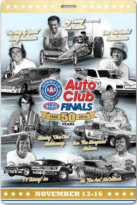 The NHRA Legends Chats will run from 10 a.m. until noon on Saturday and the special legends autograph session will take place between Saturday's pro qualifying sessions. Fans can attend the Legends Chats and autograph session by obtaining a special commemorative 50th Anniversary NHRA Legends Card, which will be available on a first come, first served basis at the Hot Rod Junction. NHRA fans also will play an important role in the 50th anniversary celebration as they will help decide the most iconic moments in the history of the Auto Club NHRA Finals. Fans can vote for their favorite moment from the event via interactive pages set up on NHRA.com and via NHRA's Facebook page. Special celebrations throughout the weekend are scheduled to highlight this significant milestone event. In addition to the NHRA Legends Chats and special autograph session featuring the legends, there will be several NHRA-exclusive Cacklefests showcasing the vintage dragsters of the sport's early days, a special car corral in the Hot Rod Junction featuring a wide variety of vintage dragsters and classic race cars and The SealMaster Track Walk, where fans can walk on the famed Auto Club Raceway at Pomona track prior to Sunday's final eliminations. The SealMaster Track Walk also will feature several of the sports legends.