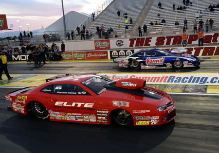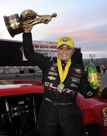 After winning the most recent event in Las Vegas, Enders-Stevens' fifth win in her banner 2014 NHRA Mello Yello Drag Racing Series season, she now holds a 17-point lead over Line heading into the final event of the Mello Yello Countdown to the Championship. On top of that Enders-Stevens could become the first female to claim a Pro Stock world championship in NHRA history, which would be a massive achievement for the driver who was also the first female to win an event in Pro Stock. But Enders-Stevens knows her focus must zero in on keeping one step ahead of Line in her Elite Motorsports Chevy Camaro, never an easy task considering his impressive resume. "It's an interesting separation because you can't get too ahead of yourself and dwell on what's at stake, but at the same time, I mean, I've never been in this position in Pro Stock, and neither have any of the guys on my team," Enders-Stevens said. "It's definitely an interesting and awesome position to be in. But I try to just stay calm about it and focus on just one round, one at a time, and just going after it and doing our best and having fun most importantly." Shawn Langdon (Top Fuel), Matt Hagan (Funny Car), Rickie Jones (Pro Stock) and Eddie Krawiec (Pro Stock Motorcycle) were last year's winners of the season-ending race that will once again be televised nationally on ESPN2.The event also marks the 50th anniversary of the Auto Club NHRA Finals at the historic facility and the race to the championship between Enders-Stevens and Line will be one of the marquee attractions. Dave Connolly trails Enders-Stevens by 84 points and is still in championship contention as is Shane Gray at 111 points back, but Line and Enders-Stevens appear to be headed on a collision course for the race to the world championship. Line took command in the loaded Pro Stock class over the summer, winning three straight races in his Summit Racing Equipment Chevy Camaro to take over the points lead. Line, who has four wins and eight final round appearances in 2014, held that top spot all the way to Las Vegas, where he met Enders-Stevens in a pivotal head-to-head matchup in the semifinals. But Enders-Stevens claimed the semi victory and then finished things off with an event win, taking the top spot into Pomona. Line, though, remains thrilled considering what is at stake heading into the Auto Club NHRA Finals.