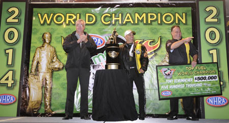 Tony "The Sarge" Schumacher celebrates championship