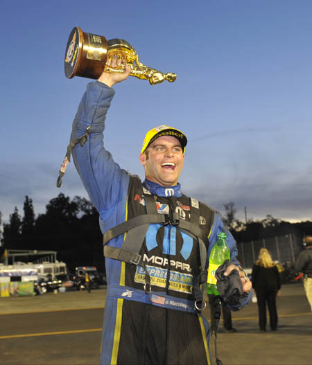 Hagan's championship is the fifth in the last four years for the Mopar and Dodge brands, following his 2011 Funny Car title, teammate Jack Beckman's 2012 crown, and back-to-back NHRA Pro Stock championships by Allen Johnson (2012) and Jeg Coughlin Jr. (2013). The Don Schumacher Racing (DSR) driver's Pomona triumph marks his second consecutive at the season-ending NHRA Finals and the 14th overall Funny Car victory of his career in 30 final-round appearances. Hagan ends 2014 with four victories on the season; Mopar-powered Dodge Charger R/T drivers combined to collect a total of seven wins. With the new 2015 Mopar Dodge Charger R/T Funny Car set to make its debut at the NHRA Winternationals in February, the DSR team's current model Charger goes out on top with three NHRA Funny Car World Championships and a total of 69 NHRA Funny Car national event victories. "Congratulations to Matt Hagan and Don Schumacher Racing from everyone at Mopar on the well-deserved NHRA Championship win," said Pietro Gorlier, President and CEO of Mopar, Chrysler Group LLC's service, parts and customer-care brand. "To win the Funny Car crown and the season finale is a wonderful way to finish off our year-long celebration of the 50-year legacy of the 426 HEMI engine. We are very proud of the team's accomplishments and appreciate their hard work to give Mopar a fifth NHRA championship in the last four seasons." Hagan, the No. 6 qualifier, watched from the cockpit as Force, in the pair ahead, won his own first-round match to pull closer in the title chase. Hagan answered the bell and advanced to the quarterfinals, posting the quickest pass of the round, 4.015/320.05, to eliminate Chad Head (5.083/167.63). Waiting in the second round was Hagan's DSR Dodge teammate, Ron Capps. After once again watching Force apply pressure by winning his match, Hagan held serve, knocking out Capps with a 4.081/314.83 to a 6.801/100.94. In the semifinals, faced with yet another all-Mopar Dodge DSR battle against Tommy Johnson Jr., Hagan clocked a winning 4.065/315.86. With the 2014 title already clinched prior to his final-round battle against Force, Hagan added icing to the cake, racing the 16-time champ to the finish line first with a 4.076/310.77 to Force's losing 4.086/276.58. Hagan left first with a .049 reaction time, led until the 660-ft. mark, where Force edged ahead, then surged back near the stripe to claim the event win. The ending was fitting - for the fourth time in the last five years, Hagan and Forced duked it out for the NHRA Funny Car championship. "It's not about how you start but how you finish," said Hagan, who began the six-race NHRA Countdown to the Championship back in the seventh spot but claimed three playoff wins on four final round appearances to end the season on top. "I just can't believe that it all came together in such a fairytale way. It's just an awesome deal to win the championship and then also win the race. This Countdown format is crazy. You have to be strong in the Countdown and have some good races there, and the rest takes care of itself. "It means a lot to be a two-time champion. Honestly, it's about our team and all the guys that have worked so hard. It may have come down to just one day, but really it's the last six races that led us to this point. Making the right decisions, digging deep and doing a gut-check out there - at the end of the day it comes down to my crew chief and my crew guys that have busted their butts day-in and day-out to make it happen, and I can't be prouder of them. It was one common goal and ten guys working together, and at the end of the day we got to hold both trophies up. I told myself this morning that this is what we worked hard for all year long. I don't need to sweat it. I don't need to be nervous. Just trust in your stuff and race your race car and enjoy the moment. "The championship was really what we were after. The race win was the icing on the cake. But it solidified that we had a great race car. To be the best you have to beat the best and everyone says he (Force) is the best and we beat him. It was nice to finish it out strong. We beat him here this time last year (at the 2013 NHRA Finals) and we did it again, so hats off to him. They had a great car, but we had the better one today."