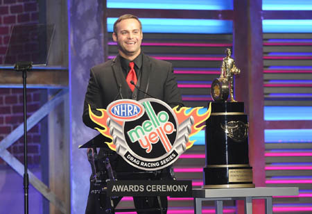 MATT HAGAN: Yeah, absolutely. You know, confidence is key out here, and confidence in your crew chief is key. I think that there's plenty of moments in drag racing where you can get down and out and really let that kind of eat at you and your confidence. You know, I've just learned at an early stage of my career that I have to keep it positive. I have to keep my guys positive. I think that in drag racing it's like being a manic depressive. It's the highs of highs and the lows of lows and there's not a lot of in between, and there's a lot more lows than there are highs. Being confident in your stuff, what you've worked so hard for, knowing that you can do the job that needs to be done out there, knowing that your team can do the job that needs to be done out there, that we worked so hard for it, and it comes together, but really like I said, having that mentality, like I know how to do this, I'm a great leader, I've got a great crew chief, and it just all comes into play. No matter what, you know you have the best race car out there on Sunday. Q. How great does it feel to have a championship now after having a struggling year in between? MATT HAGAN: Yeah, absolutely. I mean, we struggled we led the points all year long up until John took them over in the Countdown. Similar situation, the roles were just reversed with John this year versus his. Dickie got sick in the middle of the year not the middle but towards the Countdown here, and our team started to fall through, as it probably should. Dickie is our leader on our team and he makes the decisions and calls. But at the end result, I'm not trying to take anything away from what John did last year. He is a, like they say, force to be reckoned with, but it's just one of those things where I know our team is good. I know our just we are whole as a team. We ate together, we drink beer together, we hang out together, we have each other's backs, and it's not just a job to these boys. They have skin in the game. We're family. I have a beautiful, wonderful, magnificent family at home, and I've got a family at the racetrack. It's really, really cool for me to be able to leave my kids and children at home and be able to come out to the racetrack and feel like I have another family out here, as well.