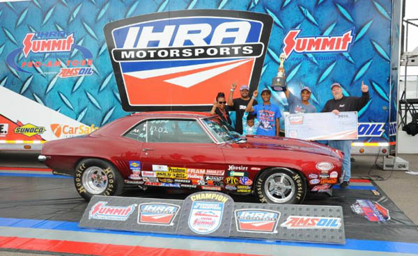With his car up and running, Hutto returned to the dragstrip this season competing in IHRA's Division 4 where he won one race and managed to finish second in the division behind good friend Jimmy Hidalgo Jr., securing a spot in the IHRA's Summit Racing Equipment Tournament of Champions. To add to the excitement, Hutto's son, Justin, also qualified for the final race of the year at Memphis International Raceway in the Summit SuperSeries by winning the Division 4 Team Finals. With two spots in year-end championship tournaments locked up, Hutto and his son traveled to Memphis with one thing on their minds - visiting the winner's circle and bringing a world championship back to Houston. While Justin Hutto fell out in the first round of his race, Jimmie Hutto managed to go four rounds ending in an exciting matchup against Kevin Locklear for the Stock championship. In the deciding round, Locklear held a slight advantage on the tree, but couldn't run the number with a 10.803-second elapsed time on a 10.78 dial at 119.24 mph, while Hutto ran a near dead-on 10.023 on a 10.02 at 131.34 mph to take the IHRA Stock World Championship, his first.