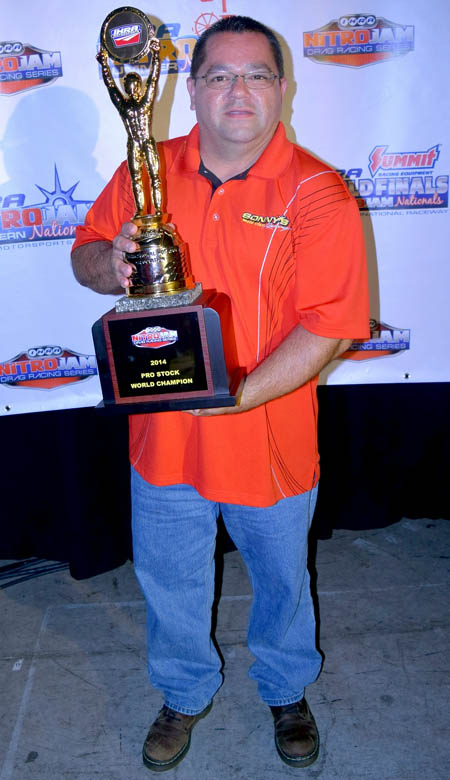In addition to an exciting championship battle, the season was a success in a number of ways, including the much-anticipated return of the Pro Stock class to its rightful home with the IHRA. "Everything is starting to turn around for this class, which is pretty exciting," Goforth said. "The support we have received has been exceptional. We are really trying to show our support for this class and the IHRA in bringing Mountain Motor Pro Stock Racing back to the forefront and where it belongs with the IHRA." Goforth attributes much of the success of this year and his previous championships to his father, Dean, who has helped keep the Goforth Racing Team atop the Pro Stock world for some time. In fact, the team fielded a three-car operation in 2014 in two different series, with all three teams finishing in the top six in IHRA points. And it was Dean who was the driving force behind the ambitious schedule that resulted in one of the most unlikely endings in IHRA history. "It was something we certainly didn't want to have happen, but the closer we got to the end of the year, we knew we were going to end up having to do the double," Goforth said. "It costs a lot of money to get a plane from here to there; luckily I have a dad who is as crazy as any 20-year-old trying to do this. He always thinks outside of the box and I am appreciative of that. "Everything he has done for us has been a blessing. It was crazy. Three cars, multiple series and to end it all flying from Virginia to Memphis for two different races, what a year."