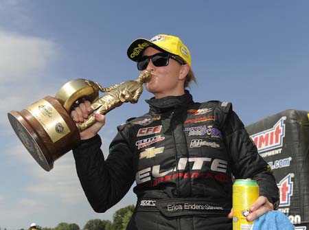 Voting opened this week online for the magazine's 20th annual Racer of the Year. Readers can vote in six categories through Jan. 12, 2015, with the final results announced in the spring 2015 issue and on www.racer.com. Enders-Stevens completed a terrific championship season with Elite Motorsports after battling to the final round of the final event of 2014. She won six races, including the final two, to become the first woman to win the Pro Stock title and the third woman to win an NHRA championship. Enders-Stevens, 31, was fourth in the points standings with four races remaining, but she raced to the semifinals in St. Louis and Reading, Pa., to move to second place. At the penultimate race, in Las Vegas, Enders-Stevens faced points leader Jason Line in a pivotal semifinal battle. She won that round and then beat five-time Pro Stock champion Jeg Coughlin Jr. in the final round to win the race and take over the points lead. Enders-Stevens and Line were on a collision course at the season finale in Pomona, Calif., as the two were on opposite sides of the ladder. After winning her first two rounds, Enders-Stevens faced Jonathan Gray in the semifinals. For the first time in NHRA pro history, both drivers ripped off perfect .000-second reaction times, with Enders-Stevens advancing to the final thanks to a quicker pass. That put her against Line in a winner-take-all final round, and when Line went red, Enders-Stevens joined Shirley Muldowney and Angelle Sampey as the only women to win an NHRA title. Fans can write in Enders-Stevens for both Racer of the Year and Drag Racer of the Year by visiting http://www.racer.com/more/racer-of-the-year/item/111955-racer-of-the-year-vote-for-y our-stars-of-2014. You can only vote once, so fans are encouraged to make their vote count.