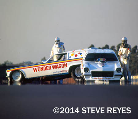 had a very short time in the funny car class. He was a team Wonder Wagon driver for about a minute and then gained his senses and went back to Junior. That's Glen in the back towering over his Vega panel ride.