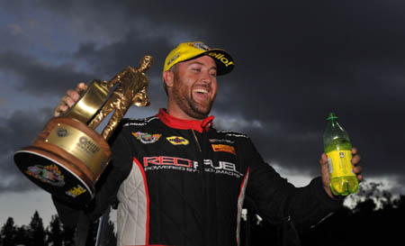 Langdon earned his second Top Fuel win of the season, sweeping both Wally trophies at this track for the second time in his career. Langdon, who won the season-opening Winternationals in the cockpit of an Alan Johnson Racing dragster, defeated Antron Brown in the final round in a Don Schumacher Racing machine. Langdon powered his Red Fuel dragster to a 3.715 at 332.43 to finish in front of the recently crowned world champion, who posted a 3.732 at 321.73 in his Matco Tools dragster. "I love this track," said Langdon, the 2013 world champ who now has 11 career victories. "It has always had a special place in my heart. I grew up right around the corner (Mira Loma, Calif.). I was always out here watching my heroes race. I have so many great memories out at this track. Luckily I've had a good career here. It makes it sweet to share these special memories with your family and friends."