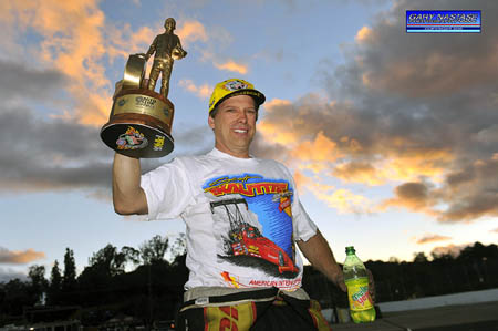 DEL WORSHAM: Thank you, first off, for the words there. I wish I had, I just haven't had much time yet. A little bit on Sunday night when we got home my wife and I and the girls we had a chance to kind of reflect on it a little bit but come Monday morning I was already out at the track helping out with my dad's car. We have licensing for drivers that we wanted to upgrade this week, and I already put it on the books and you gotta do what you say. So I'm up here in Bakersfield right now getting ready to go out and make some runs with a guy, and we are going to run basically through Sunday. So come Monday, we're going to sit down and reflect on it and relish what took place here. Q. Of all of the individuals involved in your entire racing career, who do you wish you could reach out to and just say thank you, thank you for everything you've done for me? DEL WORSHAM: Right, right, there are -- the one guy who is not around anymore who passed away besides my father who gave me this opportunity was -- there was actually two of them, Ron Toddran, he was my dad's partner, and he basically owned the car at the time when I started driving it. He -- he believed in me enough to give me that opportunity to let me drive. Him and my dad were partners but he thought it was a good idea and we had another individual, Dennis Thompson working for us who really pushed it hard, too, so those two guys I would like to really reach out and say thank you. Q. Del, going back to the -- was there any -- was it enjoyable as well as being pressure packed to be racing against this guy at the top of your game? DEL WORSHAM: In qualifying you know it's fun, because there is not a whole lot of pressure because it's not do or die at that point. We definitely had some fun runs with him. I think 2Q, when we both ran close to 391, or whatever, those were both great runs and that was exciting at that point. But on Sunday when it came down to. Q. How do you think it's going to change NHRA, the way it's perceived among the big motor sports? DEL WORSHAM: I hope it increases our viewership. Personally, you know, I don't go back and watch a baseball game when I know who won, and I don't watch a football game when I know who already won. So hopefully by going live we will get a lot of people there, and they will really pay attention and tune in and watch us on Fox. It's going to be exciting, and I think it's definitely the next step for NHRA Drag Racing. I just don't see any down side to it whatsoever, I just think it's going to be great.