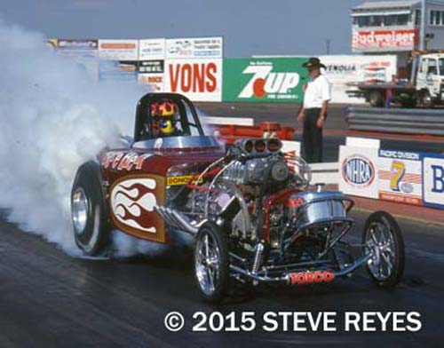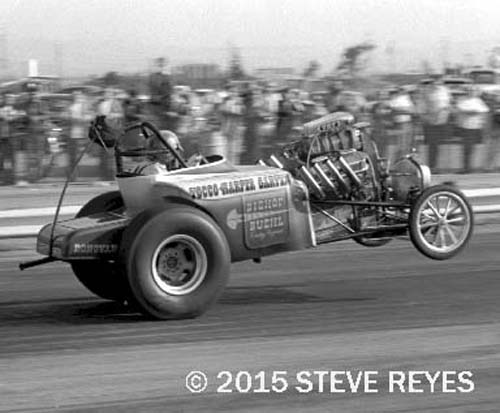 As 2015 comes to a close, I think back to those we have lost in the drag racing community. For me, its personal because I grew up watching and photographing them race and do their thing. Each one of these individuals left a legacy in the sport of drag racing and I must thank them for their contribution to the sport I have enjoyed for over fifty years. From the pro stock ranks we lost Larry Huff, Joe Lepone and Hubert Platt. The funny car class lost car owner Nick Boninfante Sr., car owner/driver Gary Burgin and Roger Garten. Bill "Maverick" Golden passed away from the exhibition class. Then from the top fuel ranks, we lost Dave Beebe. A very personal loss for me was the passing of photographer Jim Kelly. Kelly was a long time friend and his images of drag racing from the 1960s, 1970s, and 1980s are true classics of the sport. One other person I should mention is the loss of George Barris. While he wasn't a drag racer or owner, he was the self-proclaimed "King of the Customizers" If you grew up in the '60s and '70s, were into cars and TV, then you saw some of George's ideas grace the small and large screens of TV and movies. The Batmobile of the 1966 Batman TV Show was a Barris creation. The rock group the Monkees had their Monkeemobile on their TV show and of course, Herman Munster was at the wheel of the Barris designed and built Munster Koach while Grandpa Munster drove the Drag-U-La coffin shaped dragster. These wild creations all came from the imaginative mind of George Barris. I was fortunate to have worked with Barris on a few stories for Popular Hot Rodding during the 1980s as well as with Ed "Big Daddy" Roth before his death in 2001. All of these men touched the automotive industry in a unique and individual way and their passing is a time for us to remember their contributions to the world around us. If you wish to purchase prints of the photos below, they may be obtained by contacting us at breyes@reyesontour.com. Other photos may be viewed by following the link at the bottom of the page at www.reyesontour.com.
