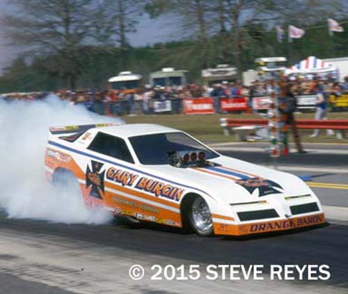 From the AA/GS class to fuel burning funny cars, was a trail blazed by Burgin. He really bloomed when he started his line of Orange Baron funny cars and he was a fan favorite wherever he raced.