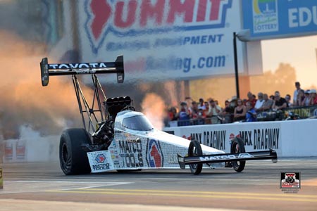 ANTRON BROWN: Oh, absolutely not. We went there last year and we lost in the final, and we were sore that we lost. We lost to our teammate in Langdon with the Red Fuel car by I think it was like five- or six-thousands of a second, and we backed our car off because we ran low ET in the semifinals, but we actually threw a rod, we broke a rod, and we went in 70 flat and didn't even make it to the finish line. We were about to run a 60 out there, like a high 60, and then we went to the finals and we backed our car down thinking like, 'All right, we don't want to do that again,' and it wasn't a tune-up, we just had a rod that just went south on us, and we slowed up and we went like a 72 with a three to Langdon's 71 with an eight, and me and him both had ideas for reaction times or it might have had to buy a couple off the tree and made the race close, but we were like, 'If we didn't back off, that was our race for the taking.' And that left a wound on us all last year. We were like, 'Man, we would have a championship, but we could have won eight races last year, and that would have been something special,' and in our books it was already special by winning seven and winning the All-Star Race, but when you win a race you don't get that race back, and when you're out there trying to push and be a part of NHRA history, that's one that we let slip away from us for sure.