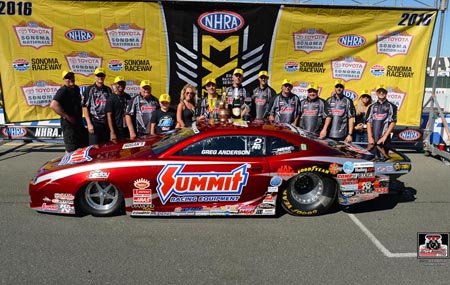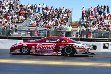 GREG ANDERSON: I've got a lot of stuff in my pocket. Every race I've got medals from soldiers, I've got a good luck charm from my wife. I've always got something in my pocket, so it may be something different come Pomona, but there's always going to be what I consider a lucky something in my pocket, and usually have a medal or something taped to the dashboard in the race car, and yeah, if people tell you they're not superstitious when it comes to things like this, they're probably lying. I will try anything. I'll take anything, I'll try anything, I'll take a chance on anything that could possibly help me. It's going to be cool either way that it goes down here, and as I said, dream scenario would be for us to plow through the field and make our way to the final and then duke it out in the final, and it would be historic. It would be the coolest thing of my career and probably Jason's too. That's what we're going to hope for and look for, but there's a lot of land mines along the way. We've got to dodge them all, and hopefully we can make some memories come Pomona. Q. You call it the coolest thing in your career; where would it rank in your life? GREG ANDERSON: It's big in my life. I mean, since I last won a championship, I've gone through a heart reconstruction, heart surgery and had questions in my mind if I'd ever be able to do this again. I remember laying in the hospital bed after getting my aortic valve replaced and hearing the doctors talk like I'd probably never race again. There was problems, there was issues that went down, and a lot of things went through your mind, 'This could be the end of it. I may never even be able to get back in a race car.'