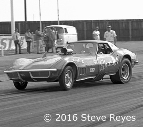 I only remember three funny cars that ran two engines; Dean Dillingham's A&W Root Beer Nova that burned to the ground; Junior Brogden's Phony Pony (two injected Ford engines in line) that was only around for a few races; and then there was Donnie Hampton's Too Bad twin engine (side by side) Corvette. The Too Bad Corvette wasn't going to set records because of its weight but it sure sounded cool. Alas, it only ran a handful of times before burning to the ground. Hampton did not rebuild.