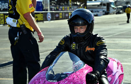 JERRY SAVOIE: You know, as a young boy, a lot of people don't know, they say I never pat myself on the back and say how good I could have been or was, but as a young boy, I did pretty good at drag racing on the streets of Louisiana. Set a couple of national records. It was all good. But the fire always burns in you. Once a drag racer, always a drag racer. Even though you don't continue racing, the fire continues burning in your body. I always wondered if I was ever good enough. It played a tole on me, 'Was I as good as Angelle?' Angelle was a young girl growing up, she baby-sat for me. When she came up, I was like, I would only dream of doing something like that. 32 years didn't sit on a motorcycle. Later in age, worked really hard, was able financially to put together a team. A friend, Paul Miller, I went and talked to him and asked him if he thought I was any good. He said, 'Absolutely. It's never too late.' I went and called George Bryce, who I went to school with. Like I said at the banquet, George Bryce put his hand on my shoulder, and he said, 'Brother, if you ride like that on race day, I promise you you're going to win one of these races.' My goal was only to win one. My dream never was ever, ever, even last year, to win a championship. It was just to come out here and compete, beat up on people, try to be the best. God has blessed me in so many ways. It's an amazing thing.