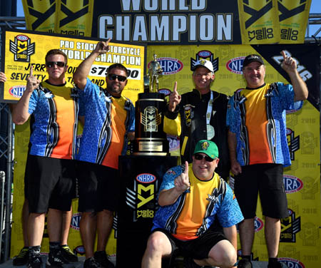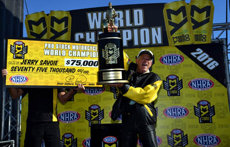 THE MODERATOR: Jerry, do you feel like you're dreaming a little bit? JERRY SAVOIE: Well, reality is just setting in. I mean, everything happened so fast that it only takes a few days, but if you think about all the events, the way it turned out, there's a lot of things to talk about. It's just amazing, man, that this could possibly happen. THE MODERATOR: You didn't win in the regular season, but you got two in the Countdown. Surprisingly, you had a first-round loss and a second-round loss in the Countdown. Did you ever start to think, 'Oh, man, this is getting out of reach now?' JERRY SAVOIE: No. We knew going into Dallas we could run really well. We had some misfortune early on. Nobody really knew about it. We tried to keep everything a big secret. But we knew for sure that we had the bike to beat. Here's the thing. In the past years, the Harleys would run you down. They couldn't 60 foot, but they could run you down. Now Vance & Hines has worked so hard to give us the power to be able to compete. With Tim (Kulungian) tuning the bike, everything started clicking. We knew they couldn't 60 foot with us. If they can't 60 foot with you and they can't run you out the backdoor, you're going to win races.