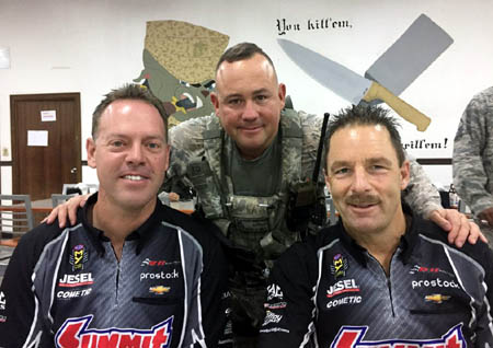 The 2016 rendition of Operation Appreciation – Summit Racing’s annual trip overseas to visit troops during the holiday season – has begun. Summit Racing Pro Stock drivers Greg Anderson and Jason Line, Harley-Davidson Screamin’ Eagle Vance & Hines Pro Stock Motorcycle riders Andrew Hines and Eddie Krawiec, and Team BIGFOOT® 4×4 Monster Truck champs Dan Runte and Larry Swim (who joined the group for the first time this year) are seizing the opportunity to say thank you to some of the men and women of our Armed Forces who are on temporary duty a long, long way from home.